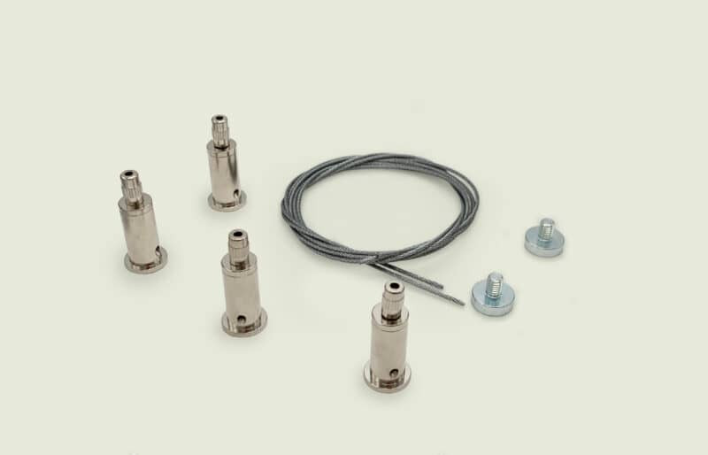 Elke baffle bevat onze standaard geleverde ophangset, waarvan je de kabels op maat kunt knippen op jouw ideale lengtes. Bekijk hier de keuze uit ophangsets.