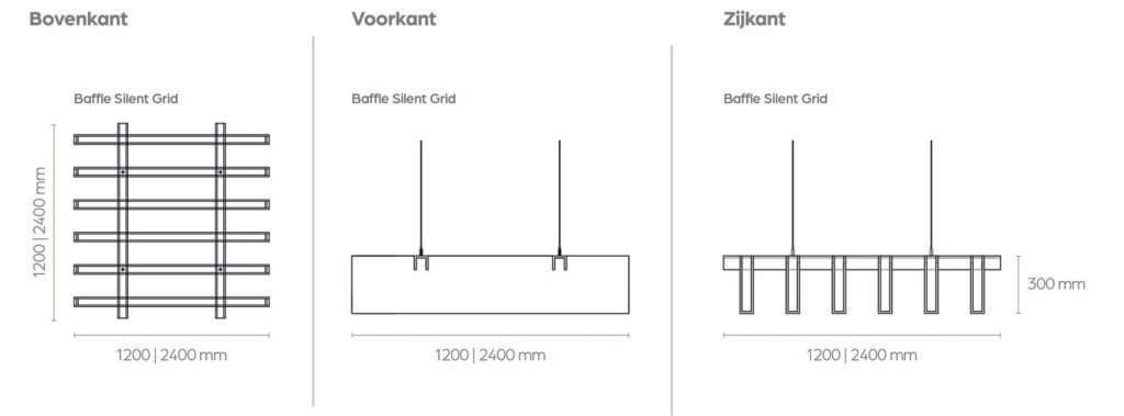 | Baffle Silent Grid 2412 | 2400 x 1200 mm | 250 mm | 1 stuks (6 baffles) | Type2, Type 2S, Type 2H |