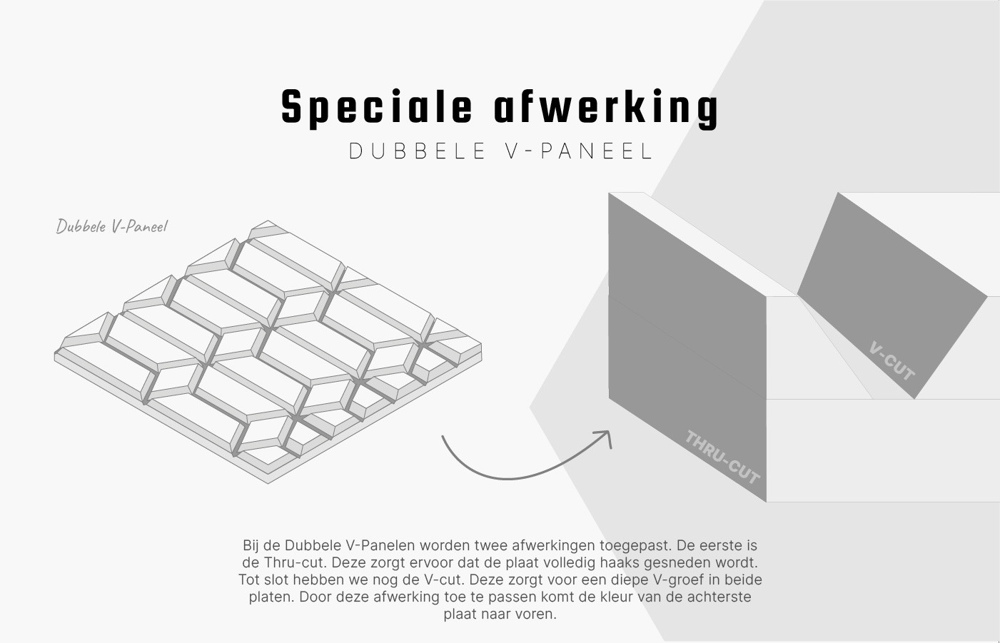 Verrijk je ruimte met het Dubbele V-Paneel voor een unieke en opvallende wandbekleding die je interieur karakter geeft.