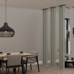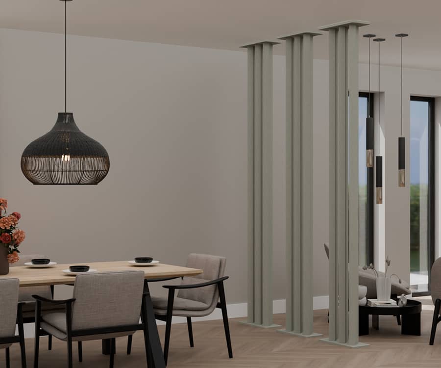 De Lamellen Scheidingswand voegt direct diepte en structuur toe aan elke ruimte. De strakke lijnen van de lamellen zorgen voor een elegante uitstraling, terwijl ze tegelijkertijd een natuurlijke scheiding creëren tussen verschillende woon- of werkzones. Ideaal voor bijvoorbeeld het afbakenen van een zithoek, werkplek of entree.