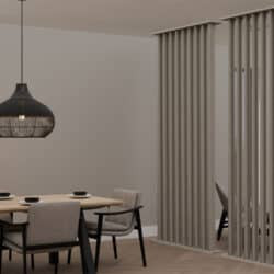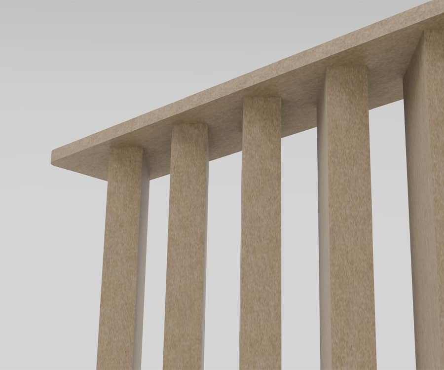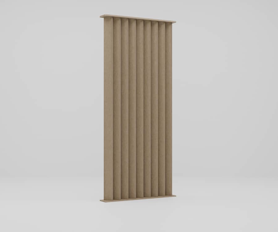 De Lamellen Scheidingswand voegt direct diepte en structuur toe aan elke ruimte. De strakke lijnen van de lamellen zorgen voor een elegante uitstraling, terwijl ze tegelijkertijd een natuurlijke scheiding creëren tussen verschillende woon- of werkzones. Ideaal voor bijvoorbeeld het afbakenen van een zithoek, werkplek of entree.