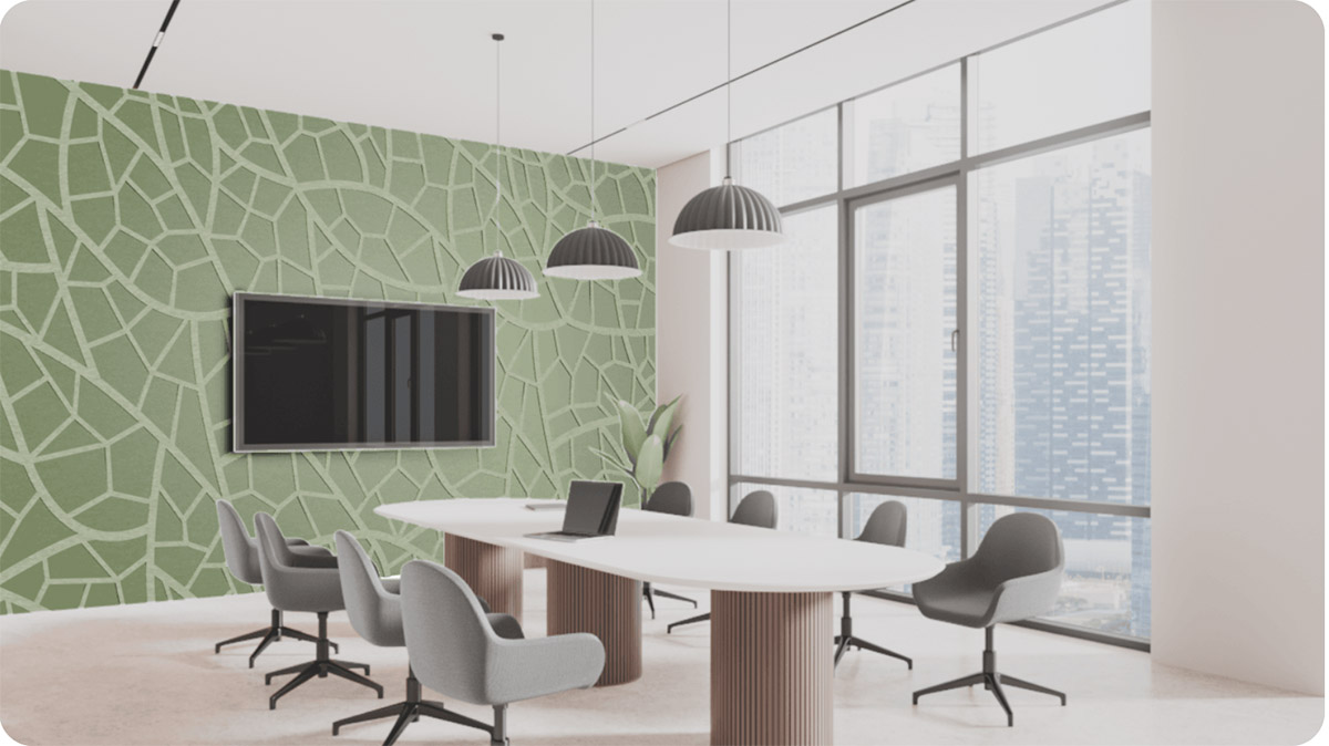 Een goede akoestiek zorgt voor een prettige leefomgeving. Het geeft een gevoel van rust en het komt onze productiviteit en energie ten goede. PET-vilt draagt bij aan een goede akoestiek in iedere ruimte. Dit unieke materiaal beschikt over sublieme geluidsabsorberende eigenschappen. Bovendien is PET-vilt snel en eenvoudig te installeren. Dat maakt PET-vilt de perfecte oplossing voor iedere ruimte waar je de akoestiek wilt verbeteren.