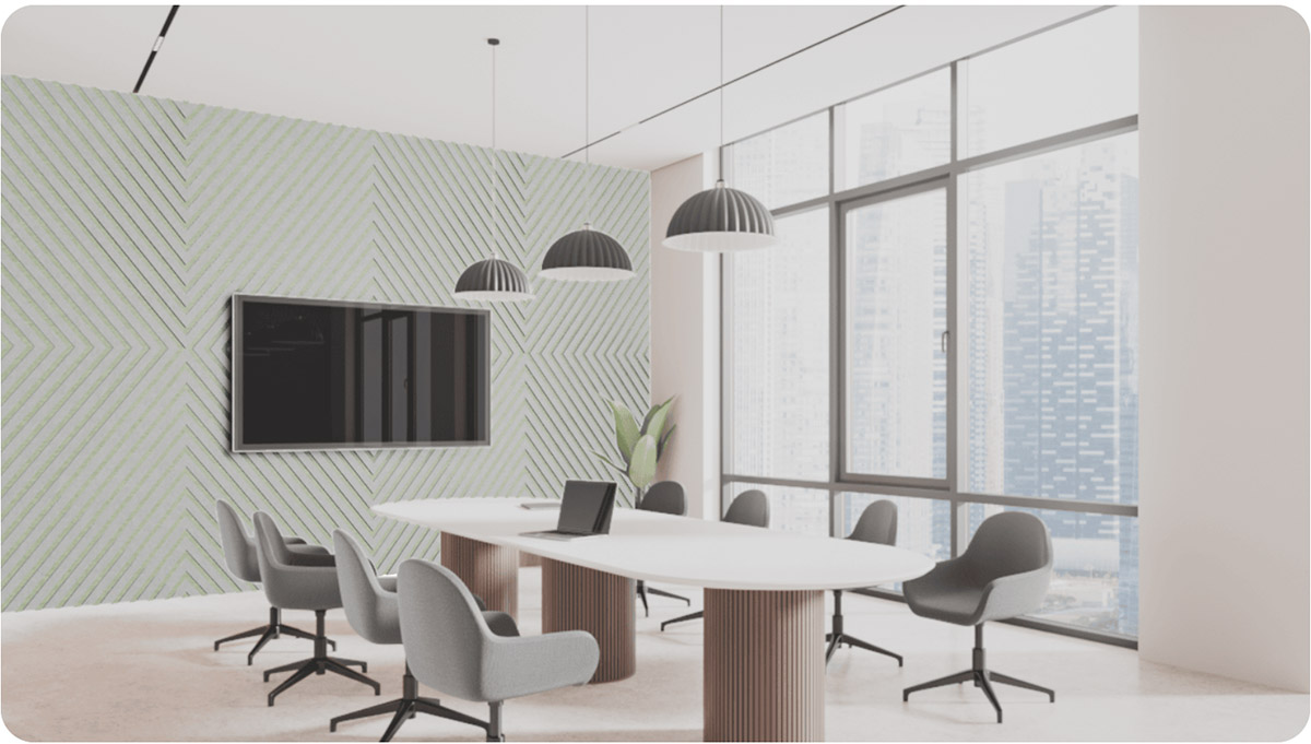 Transformeer je interieur met RustRaat akoestische wandbekleding, vervaardigd van hoogwaardig dubbellaags PET-vilt. Deze stijlvolle en dynamische latten voegen een speelse en toch stijlvolle dimensie toe aan elke ruimte. Met RustRaat creëer je een unieke esthetiek die zowel visueel aantrekkelijk als functioneel is, waardoor je interieur een eigentijdse en verfijnde uitstraling krijgt.