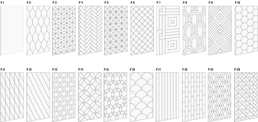 Voor het V-Paneel kun je uit maar liefst 20 verschillende patronen kiezen. De panelen zijn beschikbaar in 2 formaten 1200 bij 2400 mm (keuze uit 48 kleuren) en 1200 bij 3000 (V-Paneel XL, keuze uit 10 kleuren).