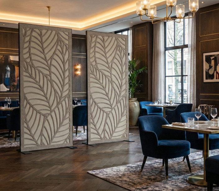 Met akoestische scheidingswanden van PET-vilt verdeel je ruimtes zonder ze af te sluiten. Ze beperken geluidsoverlast en zorgen tegelijk voor openheid. Ideaal voor kantoren, horeca, onderwijs en woonruimtes. De wanden absorberen storende geluiden en verbeteren de verstaanbaarheid.