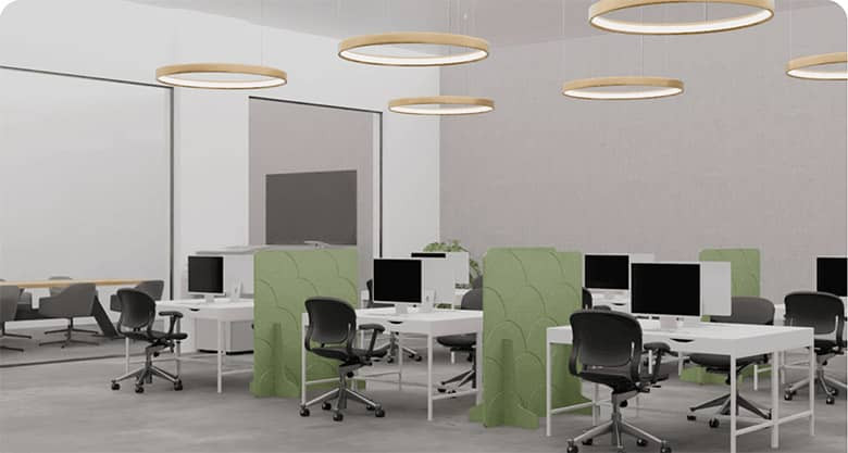 Stijlvolle akoestiek voor een goede sfeer en hogere productiviteit.