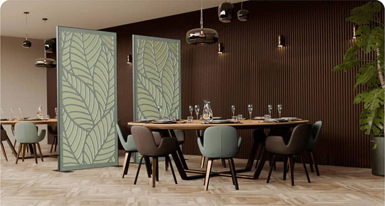 De roomdividers zijn eenvoudig te integreren in diverse omgevingen zoals restaurants, zorginstellingen, winkels, hotels en kantoren, en bieden een effectieve manier om privacy te vergroten en afleiding te verminderen. Elk design wordt ondersteund door duurzaam, gerecycled PET-vilt, wat bijdraagt aan een milieuvriendelijke keuze. Ervaar hoe onze roomdividers akoestiek en design samensmelten voor een betere werk- en leefomgeving.