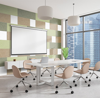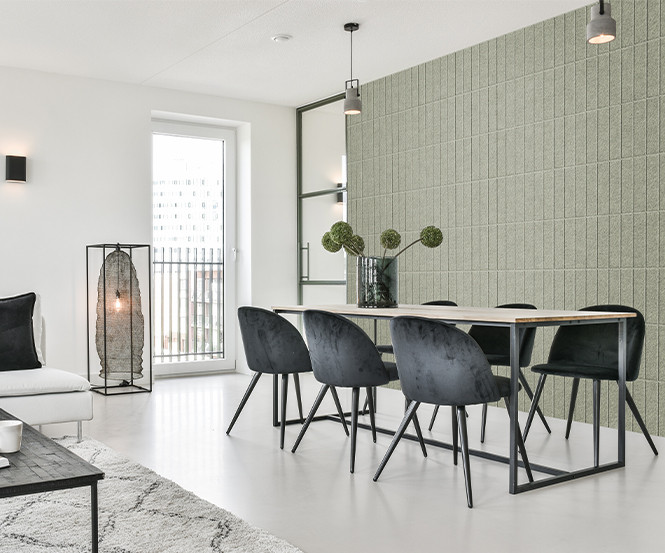 Tacito’s akoestische wandtegels van vilt hebben een mooi design, absorberen veel geluid en dragen daarmee bij aan een prettige leef-, leer- of werkomgeving.