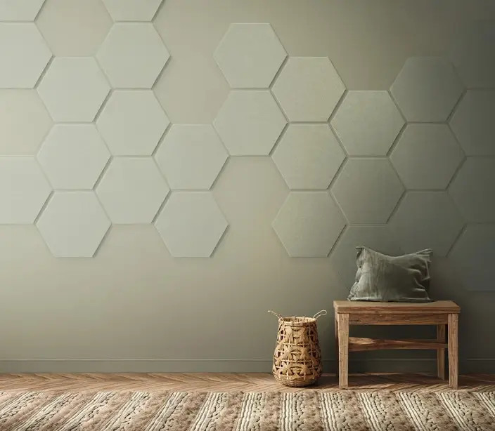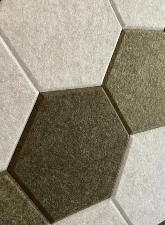 Ontdek de unieke PET-vilt tegels van Tacito, de ideale keuze voor wie akoestische wandtegels zoekt die zowel stijlvol als functioneel zijn. Deze vilt tegels bieden een uitstekende geluidsdemping door harde geluidsreflecties te minimaliseren, terwijl ze tegelijkertijd elke ruimte visueel verrijken. Kies uit onze dynamische Hexagon en Kubus designs, die beide de akoestische eigenschappen van PET-vilt combineren met een aantrekkelijk visueel effect.